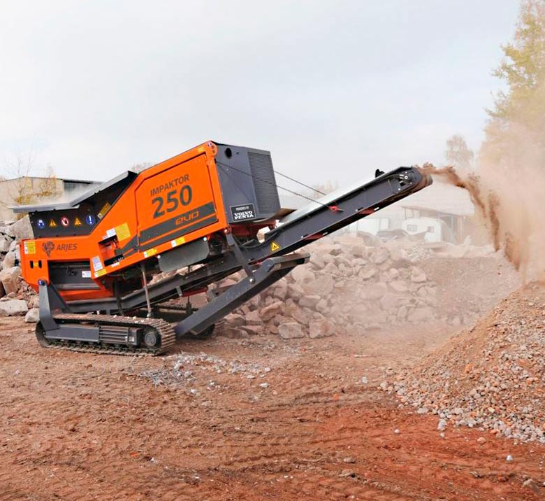 Unsere Brechanlage verarbeitet Materialien wie Beton, Ziegel und Fliesen zu Recyclingbeton oder Material für den Straßen- und Wegebau.